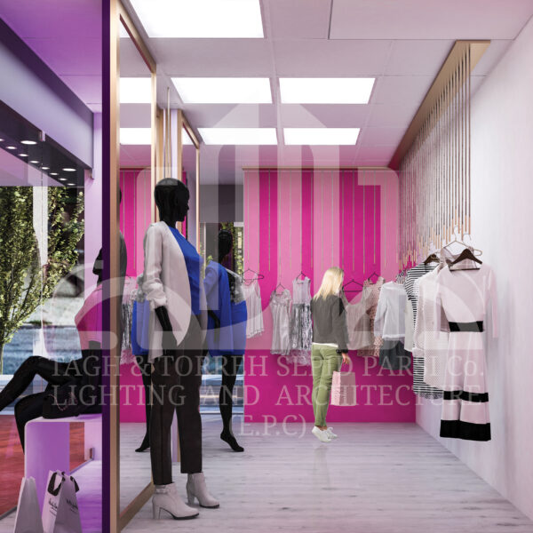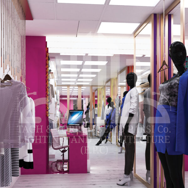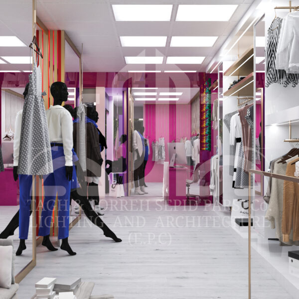 - ۲. تأکید بر نمایش محصولات: استفاده از نورهای تأکیدی برای برجستهسازی لباسها و جزئیات.