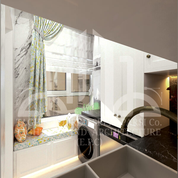 • ۸. استفاده از رنگ‌های آرامش‌بخش: در این پروژه از پالت رنگ‌های ملایم و آرامش‌بخش مانند سبز، طوسی و سفید استفاده شده است که احساس آرامش و راحتی را به فضای داخلی بخشیده است. این انتخاب‌ها به ایجاد یک فضای صمیمی و دلنشین در خانه کمک کرده‌اند.