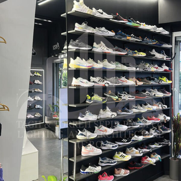 - ۶. بهینهسازی فضا و ارگونومی محیط فروشگاهی: طراحی دقیق بخشهای مختلف شامل نمایش کفش، پوشاک و اکسسوریها با دسترسی آسان برای مشتری.